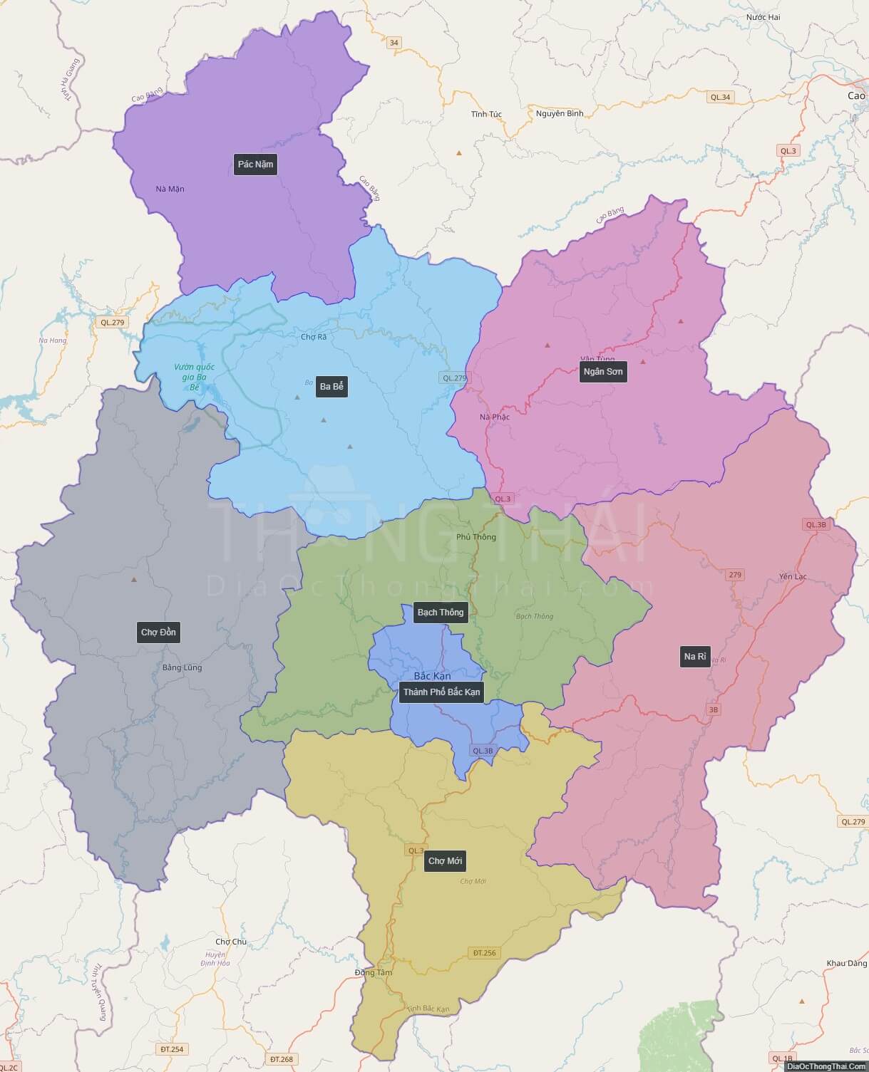 - 7 Huyện: Ba Bể, Bạch Thông, Chợ Đồn, Chợ Mới, Na Rì, Ngân Sơn, Pác Nặm.