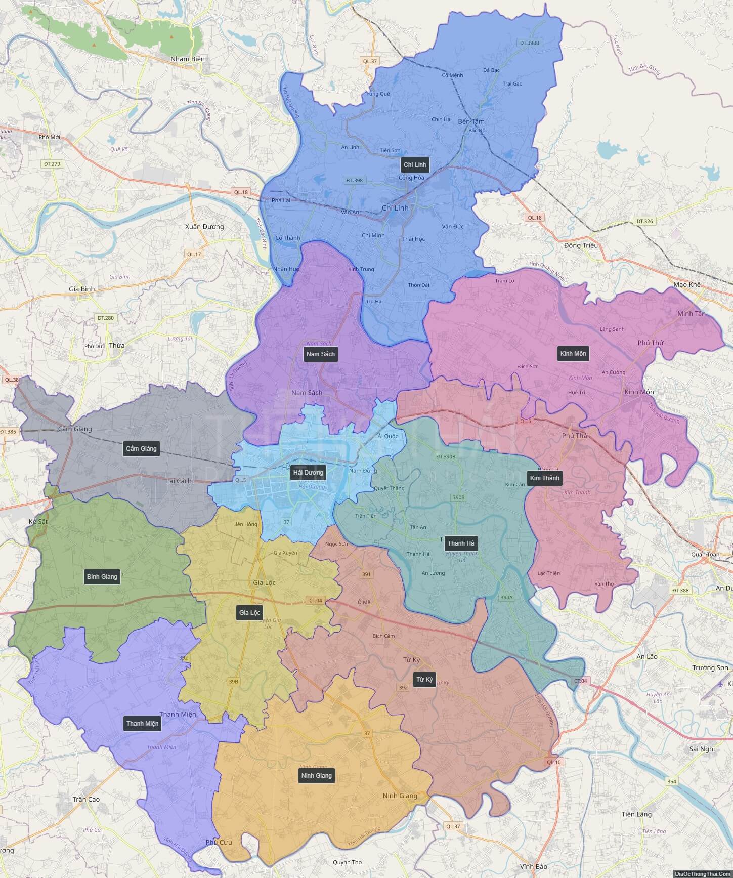 9 Huyện: Bình Giang, Cẩm Giàng, Gia Lộc, Kim Thành, Nam Sách, Ninh Giang, Thanh Hà, Thanh Miện, Tứ Kỳ