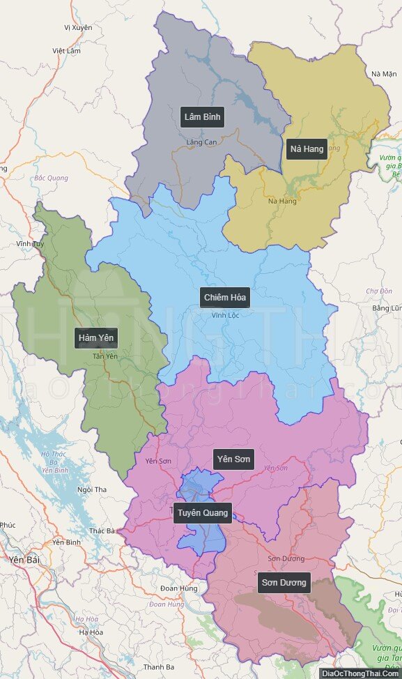 - 6 Huyện: Chiêm Hóa, Hàm Yên, Lâm Bình, Na Hang, Sơn Dương, Yên Sơn